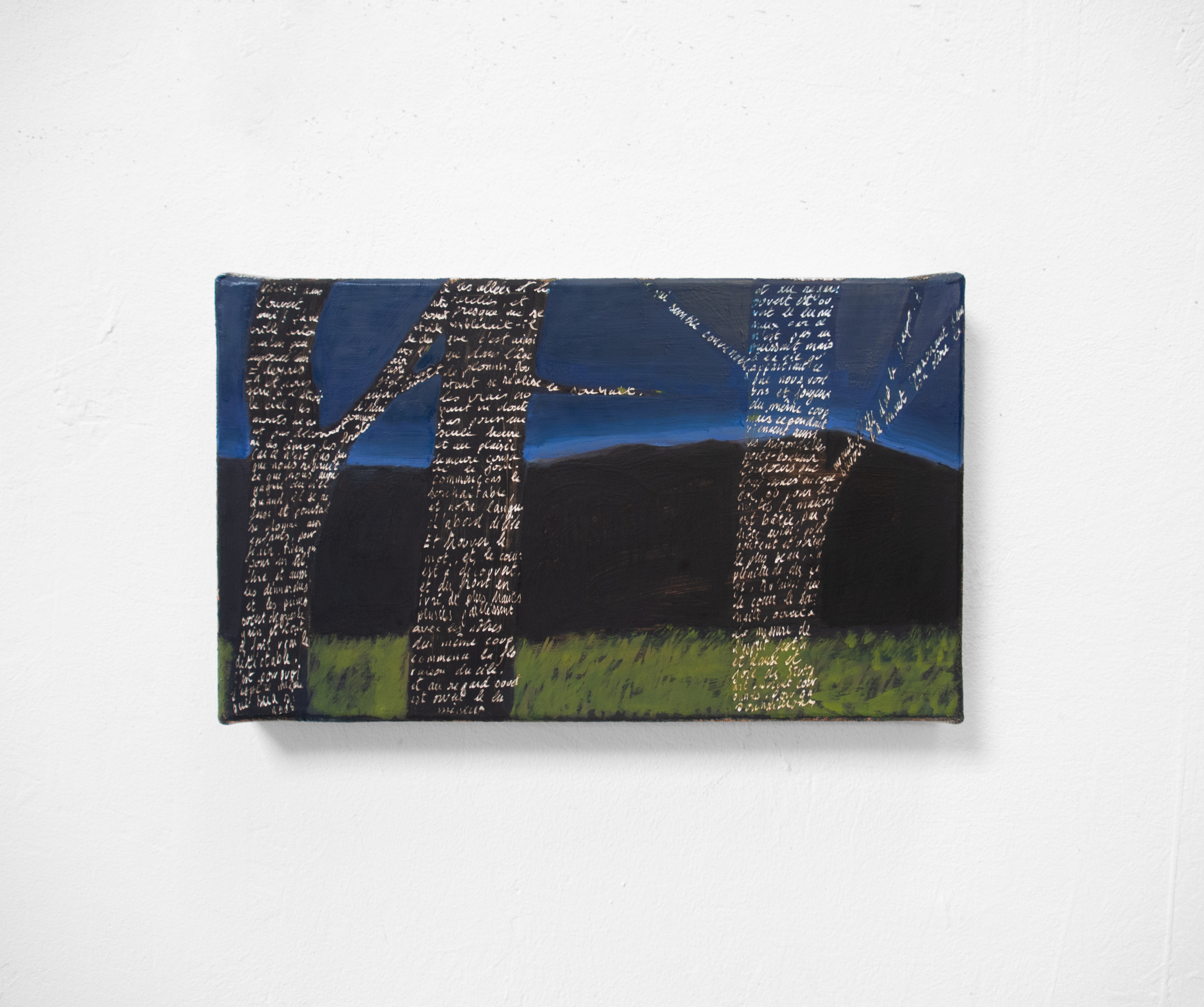 untitled, calligrammes, 14x24 cm, oil on canvas, 2025